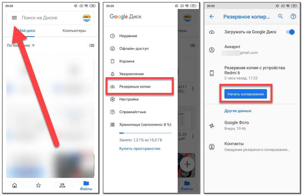Перед началом процедуры нужно обязательно создать резервную копию всех данных, хранящихся на смартфоне. Если этого не сделать, то с телефона во время прошивки будет удалена личная информация, включающая фотографии, файлы, папки и приложения. В зависимости от модели устройства вы можете использовать как встроенную утилиту, так и дополнительное приложение. Проще всего воспользоваться сервисом Google Drive, по умолчанию установленном практически на каждом телефоне. Вот пошаговая инструкция по созданию резервной копии: