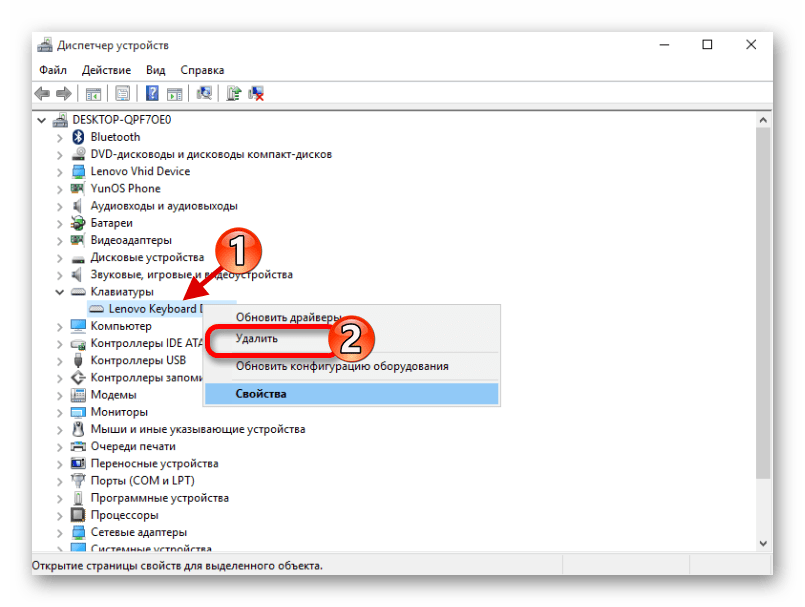 Используя «Диспетчер устройств», вы можете отключить или удалить драйвера клавиатуры.