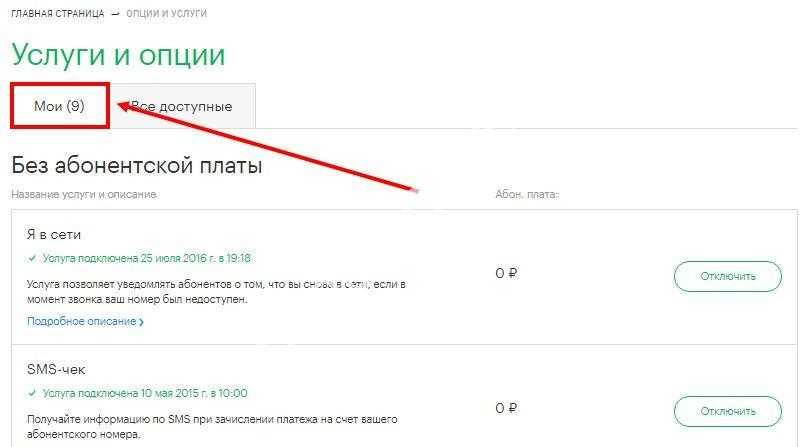 - Авторизуемся и входим во вкладку «Услуги и опции»: