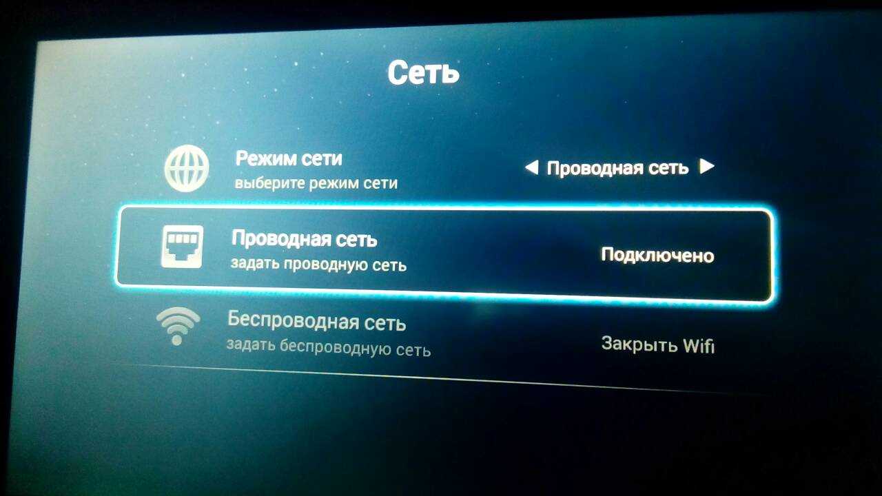 - Заходим в «Меню» > «Сеть» > «Проводное подключение (Ethernet)».