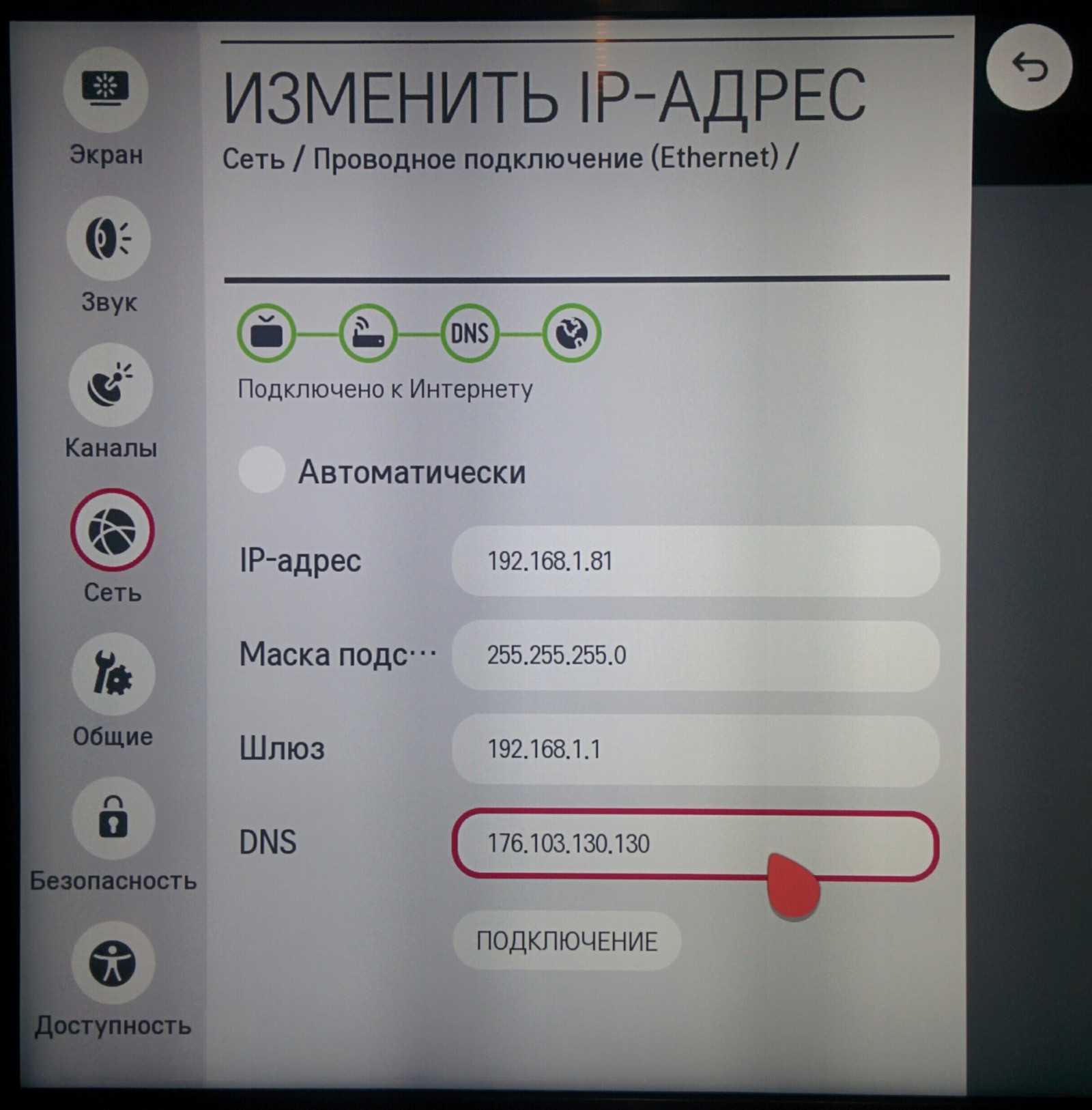 Но если телевизор начнет барахлить, например, перестанет видеть интернет, верните «Настройки DNS» к автоматическому выбору.