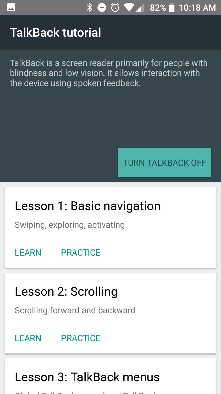 Сразу после этого программа предлагает пройти ознакомительный курс по управлению. На этом этапе пользователь изучает основы навигации в Talkback. Для обычного пользователя они очень непривычны, но слабовидящие должны адаптироваться быстро.
