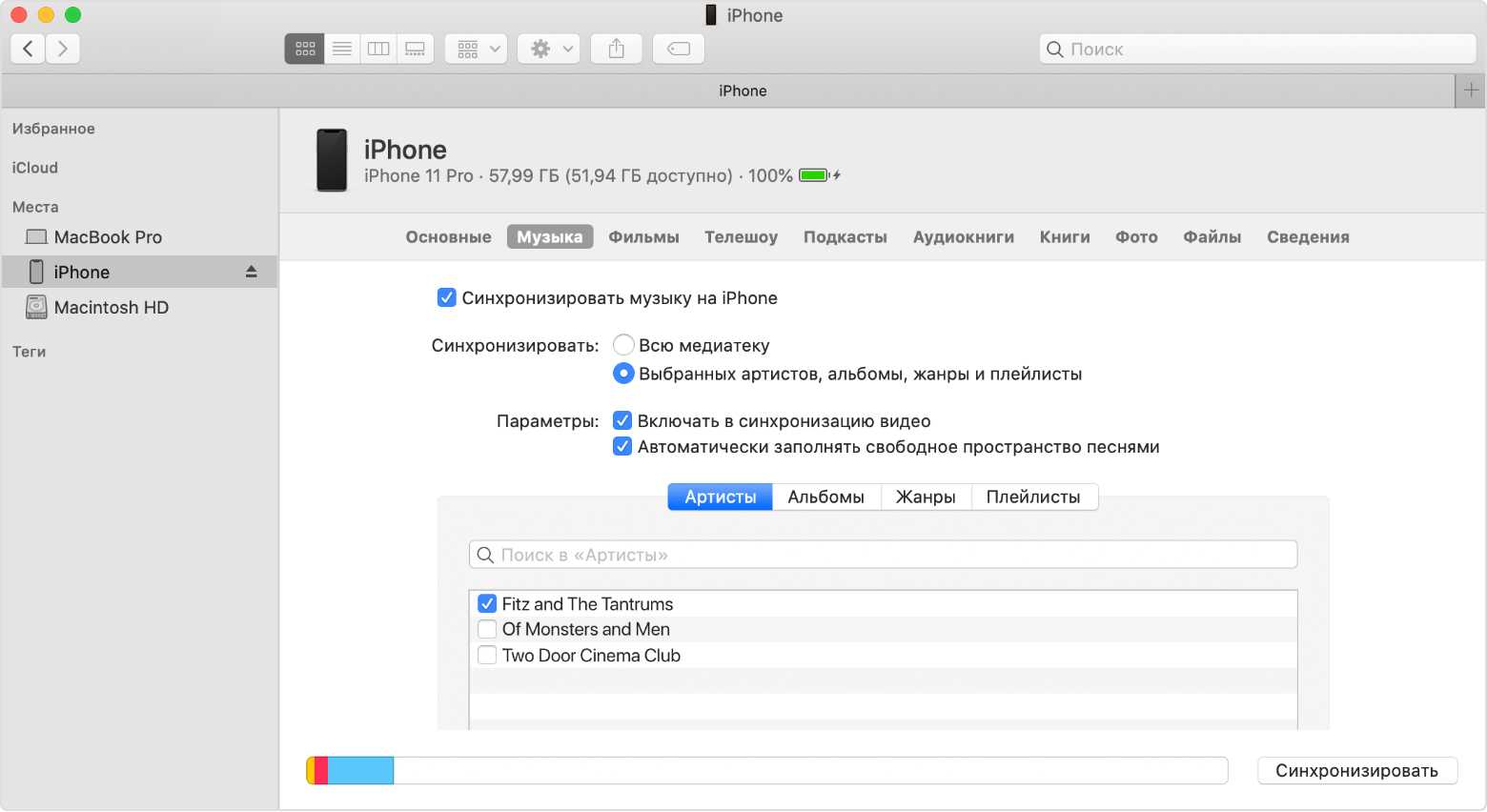 - На Mac с macOS Catalina откройте Finder. На Mac с macOS Mojave или более ранней версии либо на компьютере с Windows откройте программу iTunes. С помощью компьютера синхронизируйте фотографии на iPhone, iPad или iPod touch. На устройстве ваши фотографии и видео будут доступны в программе «Фото» > «Альбомы».