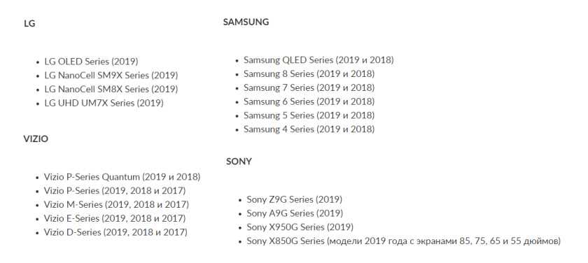 На данный момент известно, что поддержку AirPlay 2 получат телевизоры от LG, Samsung, Sony и Vizio. Конечно же не все модели телевизоров. Уже даже опубликован список телевизоров, в которых появится встроенная поддержка AirPlay 2. Некоторые телевизоры выйдут в 2019 году, а в некоторых (модели 2018 года) поддержка этой технологии появится после обновления прошивки.