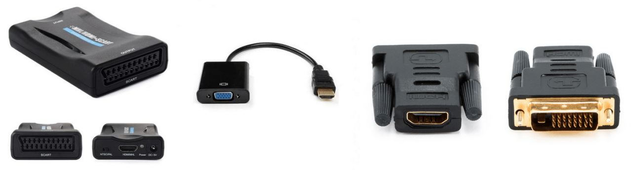 Также можно воспользоваться конвертором HDMI → SCART. В этом случае кабель HDMI подключают к порту монитора, а второй конец к преобразователю сигнала. Scart кабель подключают аналогичным образом к приставке и конвертору.