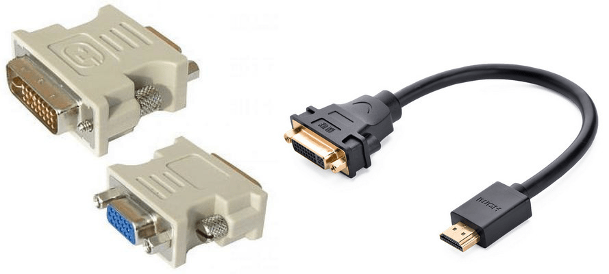 Данный способ предусматривает использование переходников DVI→VGA или DVI→HDMI. В первом случае DVI штекер переходника втыкают в приставку, а к его гнезду VGA подсоединяют соответствующий шнур от монитора. Во втором случае HDMI штекер переходника втыкают в порт монитора, а к его DVI гнезду подключают соответствующий шнур. После чего второй штекер кабеля подключают к приставке.