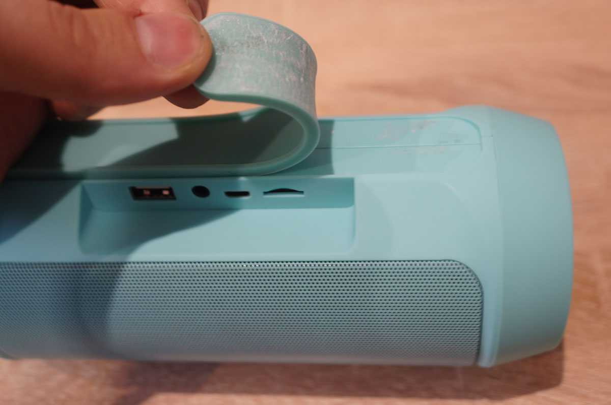 - снимите резиновую накладку снизу и сверху музыкальной колонки;