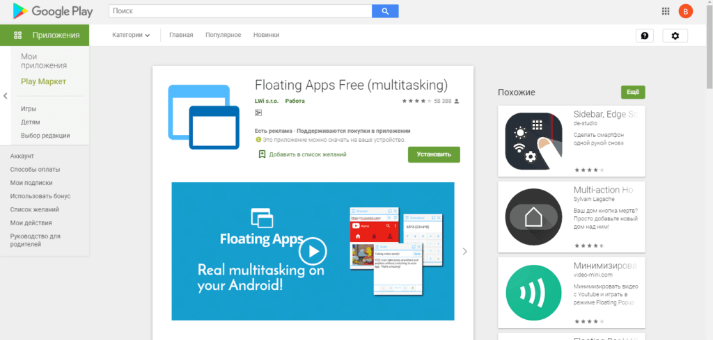 - Скачиваем и инсталлируем Floating Apps из Плей Маркета.