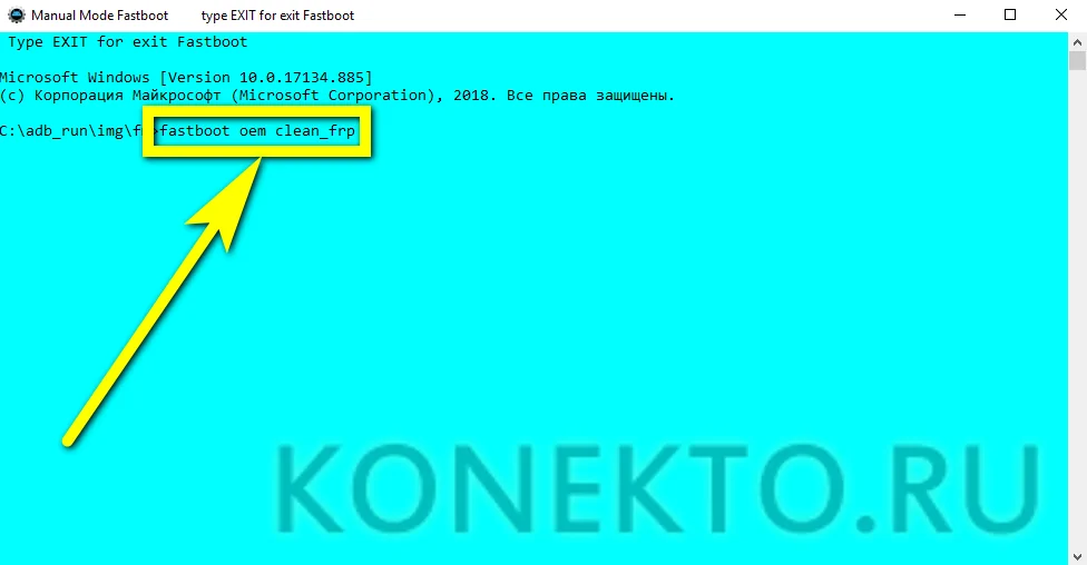 В появившейся командной строке ввести fastboot oem clean_frp и применить команду, снова нажав Enter.
