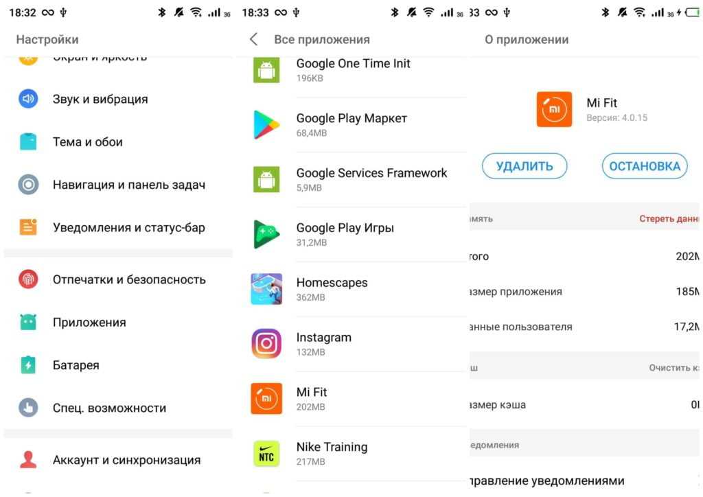 Также используется пакетный режим удаления. Приложения можно перемещать из памяти устройства на внешние носители.