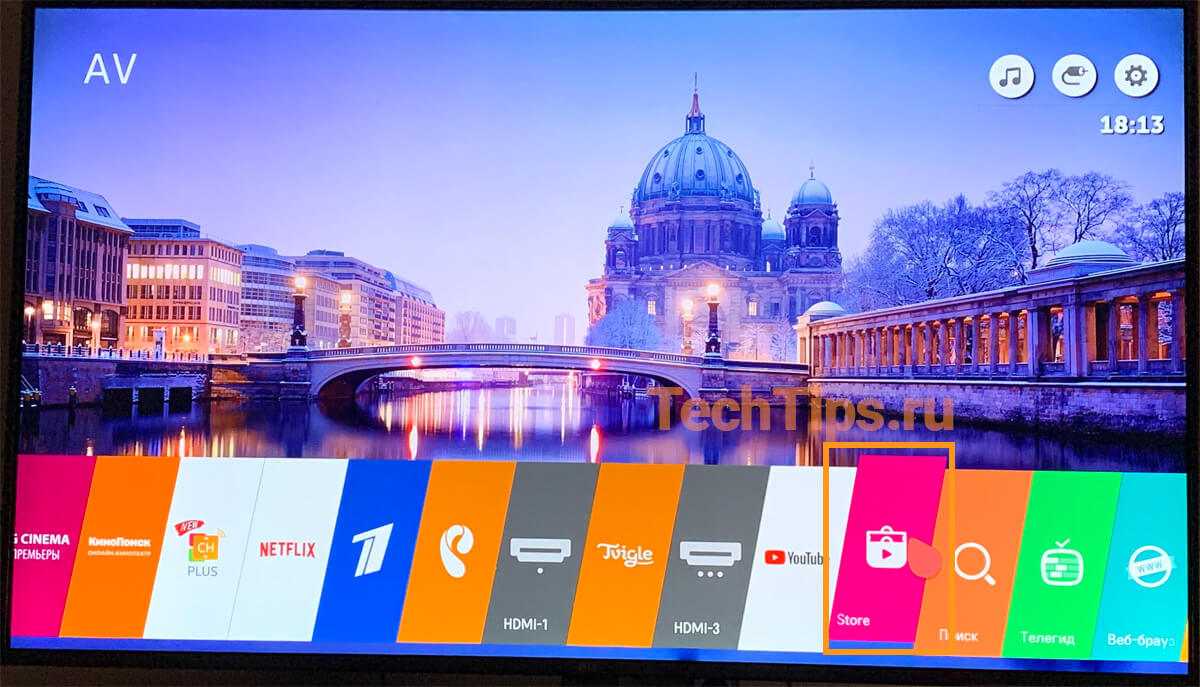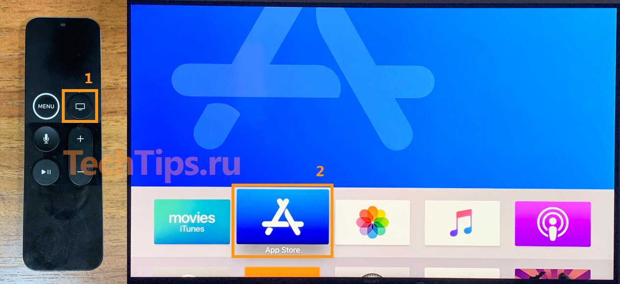 На пульте нажмите кнопку «Экран», откроется меню, выберите «App Store».