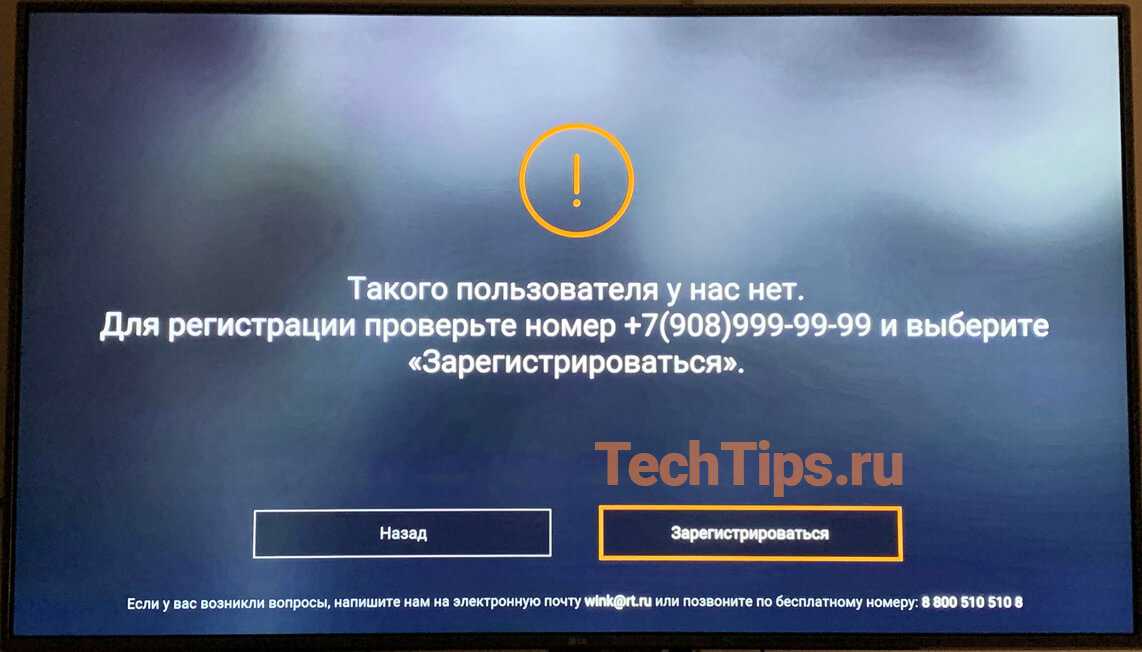 Если в базе Wink такого телефона нет, приложение сообщит об этом, предложит зарегистрироваться, нажмите на кнопку.