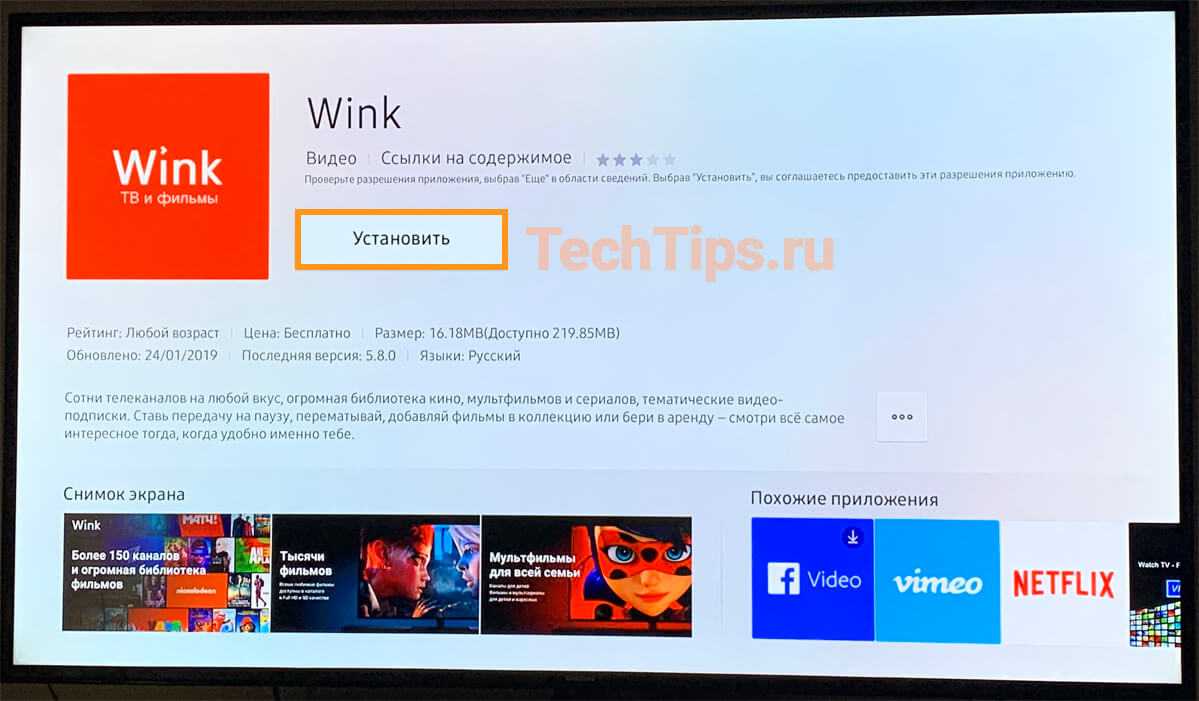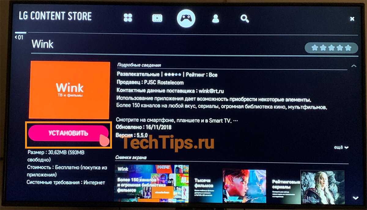 Введите «Wink», нажмите «Search». Скачайте приложение.