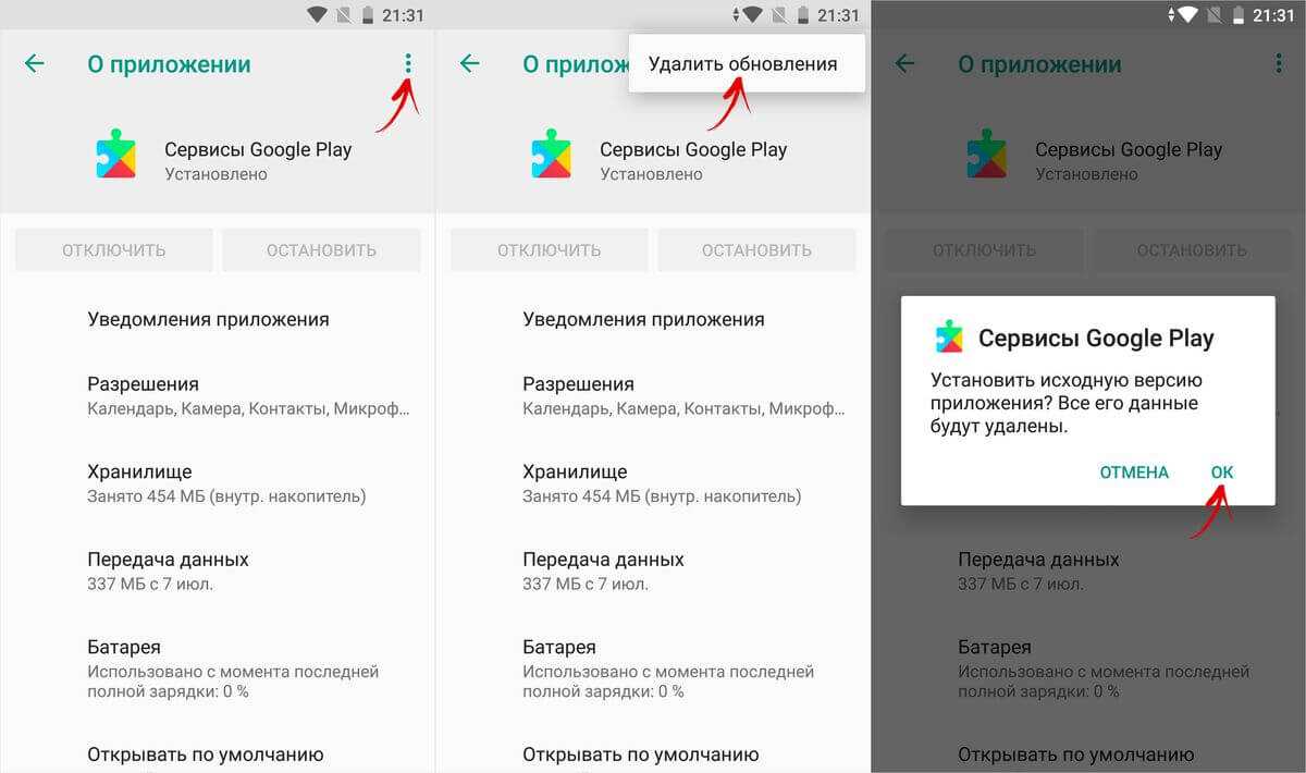 Если это не помогло, нажмите «Удалить обновления» (на Andrоid 6 и новее нажмите на 3 точки вверху) и согласитесь с выполнением действия, потом «ОК».
