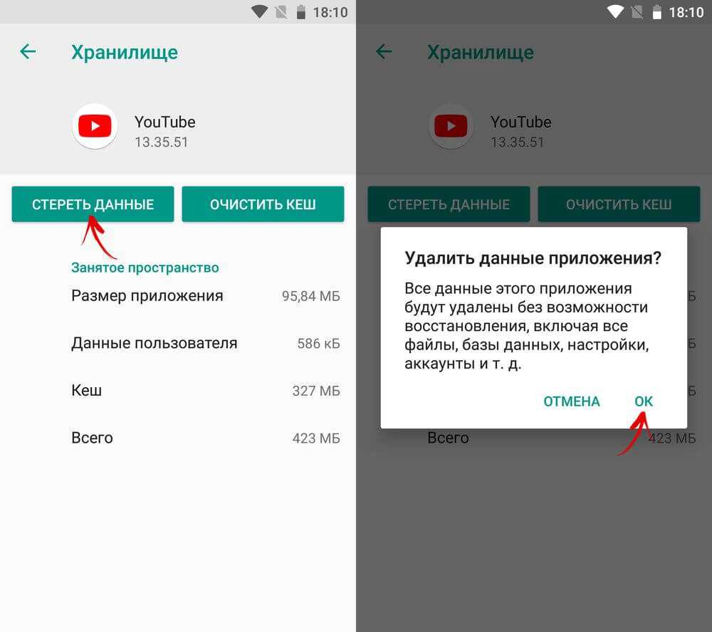 Нажмите «Стереть данные» и подтвердите удаление «ОК».