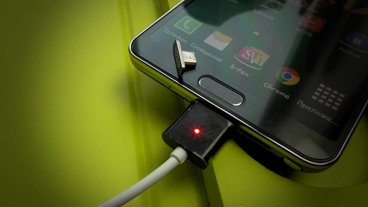Изображение 2. Подключение смартфона к зарядке для выхода из спящего режима.