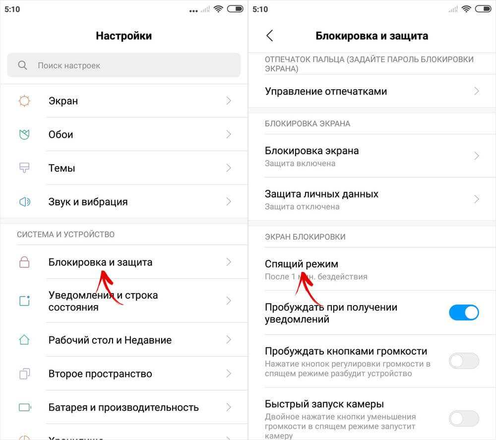 На телефоне марки Xiaomi тоже можно управлять режимом сна. Правда, включение и выключение опции происходит немного иначе: