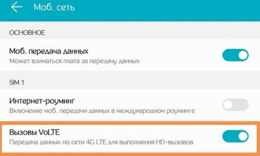 - в настройках устройства (в разделе «Мобильная сеть») должно стоять разрешение на работу VoLTE). О том, как включить эту технологию рассказано ниже;