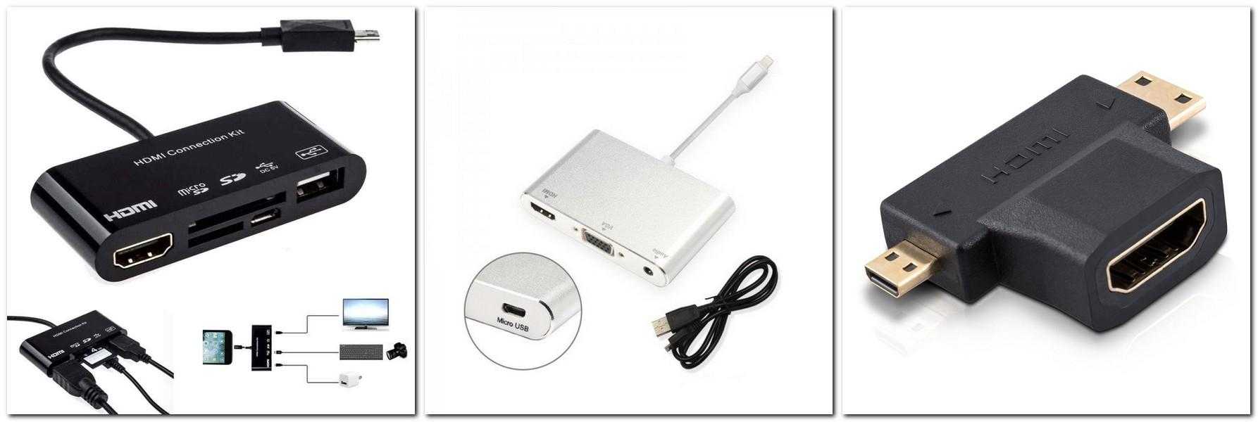 - Если такого разъема нет, то можно также приобрести и адаптер Micro USB — Micro HDMI, в который уже и подключать провод Micro HDMI.