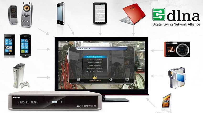 Возможности DLNA позволяют просматривать на большом экране медиафайлы из памяти мобильного устройства.