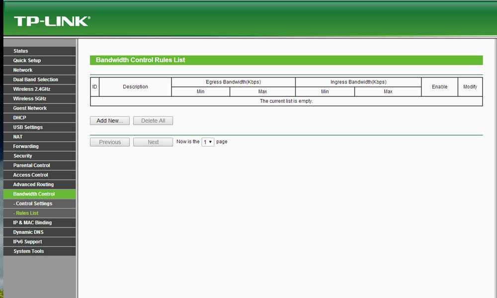 Затем выбираем в настройках раздел Bandwidth Control, вкладку под названием «Rules list». Здесь указываются адреса, на которые распространяется ограничение скорости при подключении к сети. Нажимаем на «Add new», и теперь остаётся заполнить следующие поля: