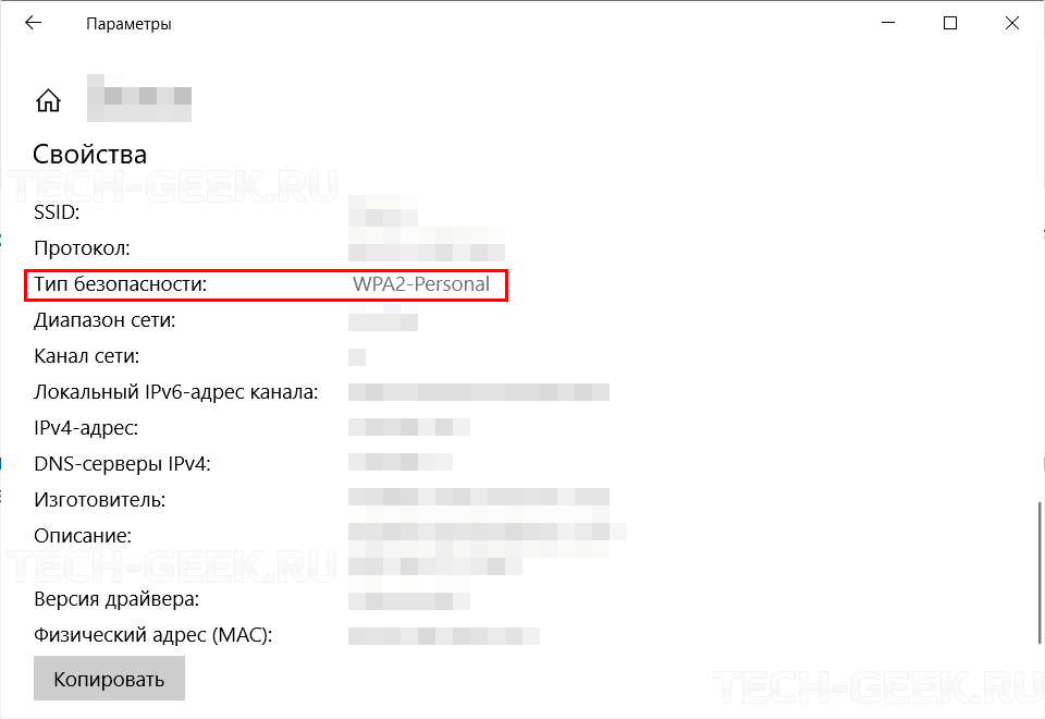 Теперь проверяем используемый тип безопасности (название может отличаться в зависимости от устройства). Защита может быть разных типов: