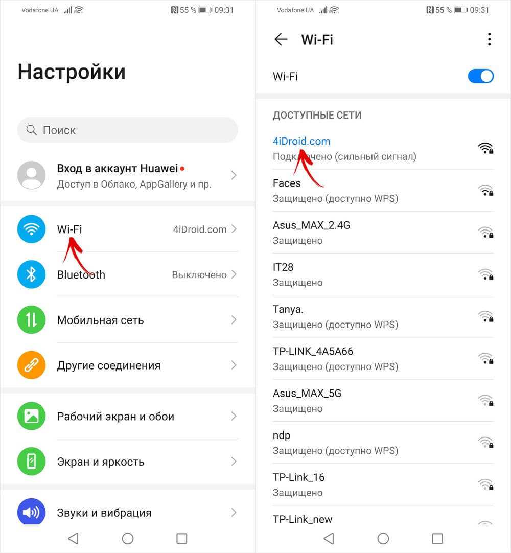 - В разделе «Wi-Fi» выберите нужную точку доступа.