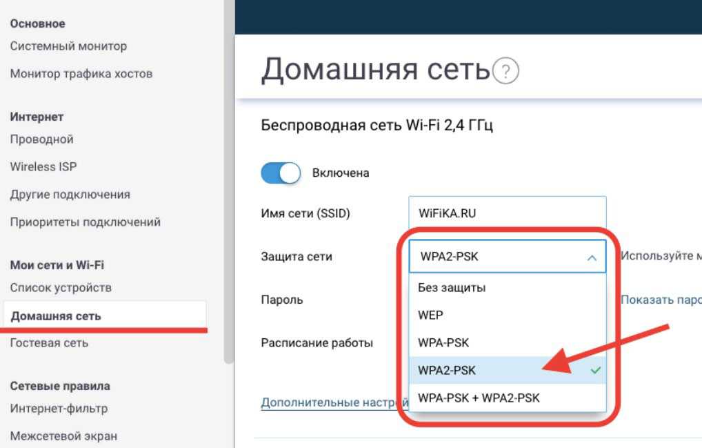 Перед тем, как запаролить вай-фай, нужно выбрать тип шифрования. От этого параметра зависит степень защиты данных.